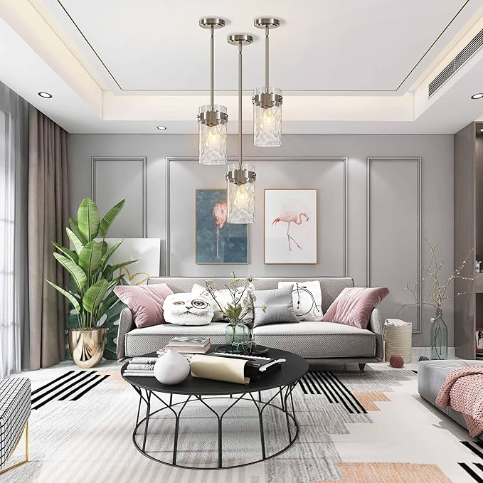 • 【Height Adjustable-5 Rod】 Height adjustable for easy customizing your lighting needs, Overall length: 63.7 inch, rod is made up of 3pcs 11.81inch and 2pc 7.87inch short rod. You can hang higher or lower as you want, farmhouse nickel pendant lighting for kitchen island living room hallway