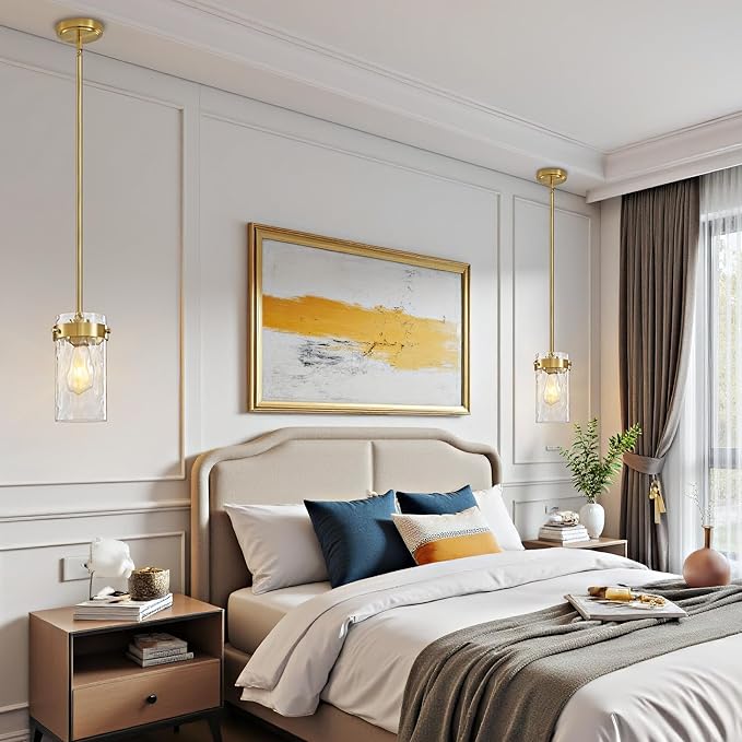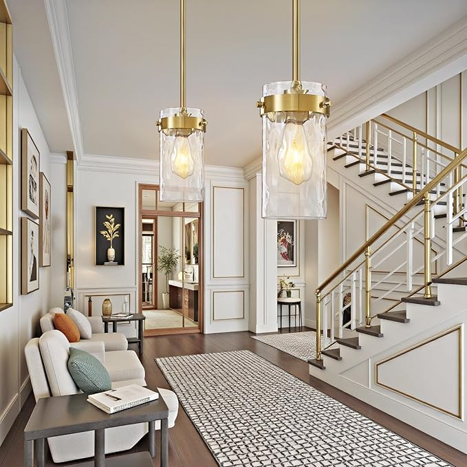 • 【Wide Application】The gold pendant light is ideal for a variety of spaces, from farmhouse pendant lighting for kitchens to pendant lights for dining rooms. It's great in living rooms, bars, kitchen counters, over sinks and in bedrooms