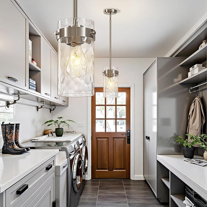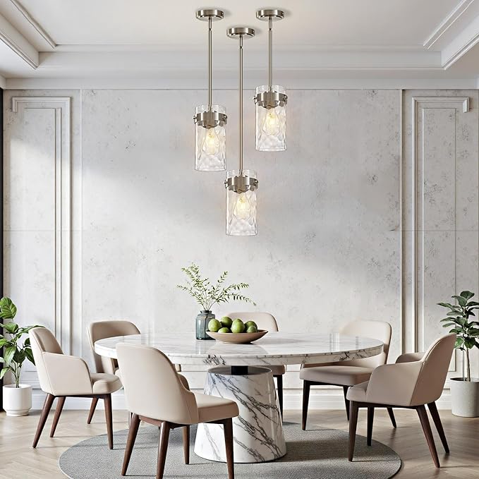 4.72" Hammered Glass Pendant Lighting for Kitchen Island 1 Pack, Modern Brushed Nickel Pendant Light Fixtures, Adjustable Ceiling Pendant Light for Kitchen Island Dining Room Bedroom Hallway