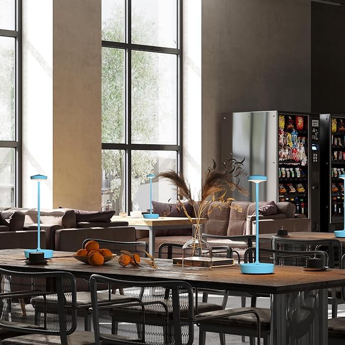 • Stylish & Versatile Design: Sleek modern design enhances any space; durable aluminum alloy body; weighted base with non-slip pads for stability; rechargeable cordless operation for indoor/outdoor flexibility; suits restaurants, cafes, patios, and home decor