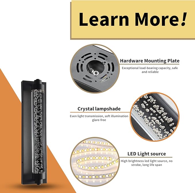 • Crystal Glass Design like Starry light: Indulge in a captivating ambiance with modern porch lights outdoor, showcasing a minimalist geometric frame in a matte black finish, alongside unique crystal adorned with bubble pattern. As the light bends while passing through the crystal, it produces a stunning effect reminiscent of a celestial starry sky. Definitely a modern and chic addition to your outside space!
