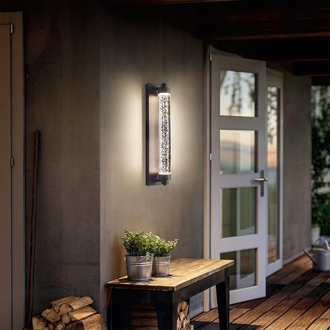 LED Porch Outdoor Wall Lights, 15.7inch Bubble Crystal Waterproof Modern Wall Sconce, 3000K-6500K Dimmable Minimalist Exterior Light Fixtures for House, Garage, Patio, Bathroom, Indoor