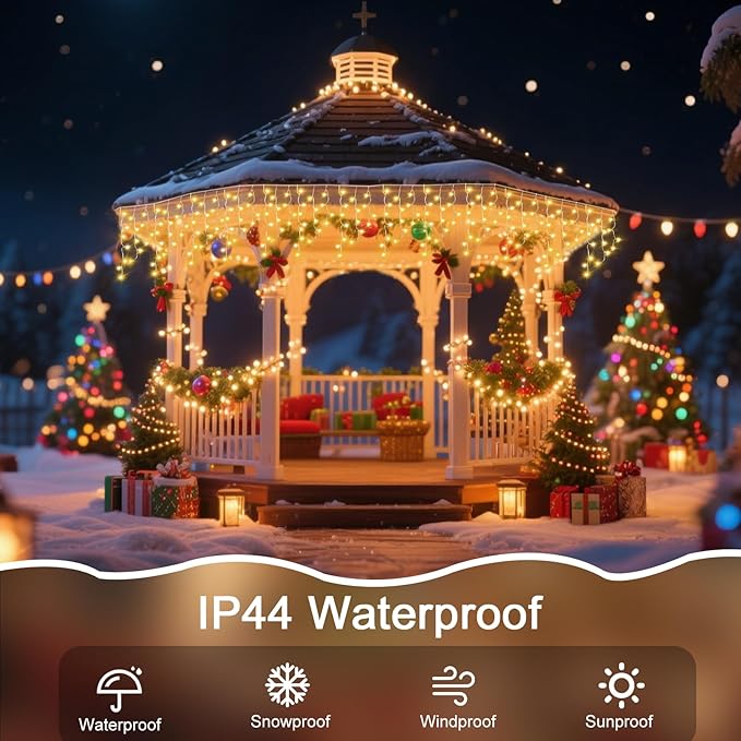 • Standalone Plug-&-PlayEffortless Outdoor Setup: Hang these outside led lights for house on eaves, halls, railings, or any outside space. Not connectable—each set operates independently with plug-and-play simplicity. Designed for quick outdoor lights for house decoration, these string lights deliver elegant cascades perfect for Christmas lights for outside. Enjoy enchanting nights with LED outdoor Christmas lights!