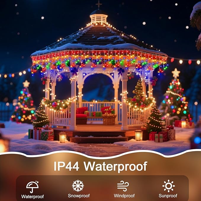 • Standalone Plug-&-PlayEffortless Outdoor Setup: Hang these outside led lights for house on eaves, halls, railings, or any outside space. Not connectable—each set operates independently with plug-and-play simplicity. Designed for quick outdoor lights for house decoration, these string lights deliver elegant cascades perfect for Christmas lights for outside. Enjoy enchanting nights with LED outdoor Christmas lights!