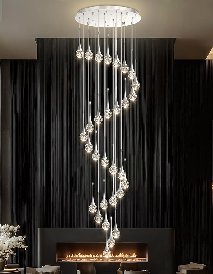 30 Light Modern Glam Crystal Chandelier for High Ceiling LED Dimmable Ceiling Pendant Light Staircase Foyer Enterway Living Room Chandelier Lighting Antique Silver