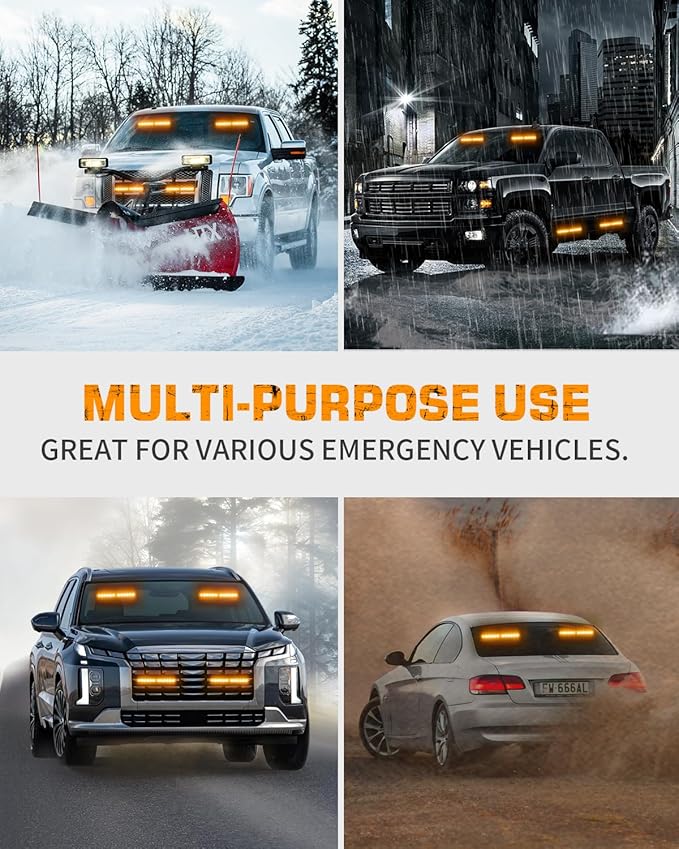 • 【DURABLE AND WEATHER RESISTANT】XRIDONSEN amber light bar are great for emergency situations in harsh weather conditions such as rain, fog, dust storms, snow and mud and strong winds, making the light visible from thousands of feet away.