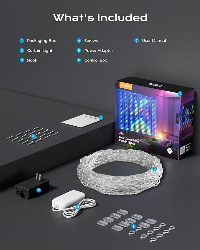 • [Easy to install & Waterproof] Use the included hooks to place the IP65 waterproof (adapter excluded) outdoor SmartDawn smart curtain twinkle christmas lights in bedrooms, gaming rooms, outdoor patios, living rooms, and more