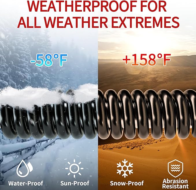 • Durable Construction: Black outdoor extension cord are made of 3 strands of pure copper core with thicker insulation in the middle and IP65 vinyl outer jacket; The pins of the 12 awg extension cord 50 ft male plug are made of special material that will not rust or corrode; The vinyl outer jacket is flame retardant, IP65 waterproof, -58°F cold and corrosion resistant