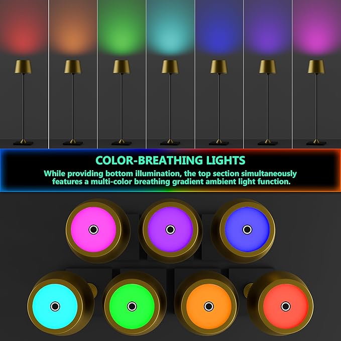 • 1. DUAL LIGHT DESIGN & RGB AMBIENT GLOW: Features a creative 2-in-1 lighting structure. The top RGB light gently cycles through a breathing gradient to create a relaxing atmosphere, while the bottom warm light offers 3 touch-adjustable brightness levels for bedtime, reading corners, or kids’ rooms—all in one compact table lamp.