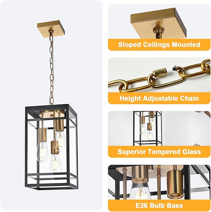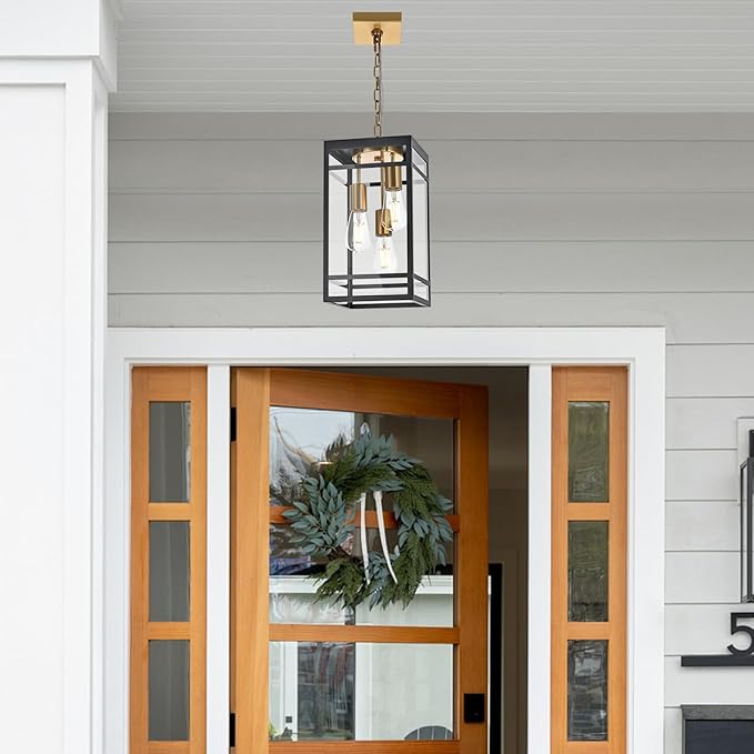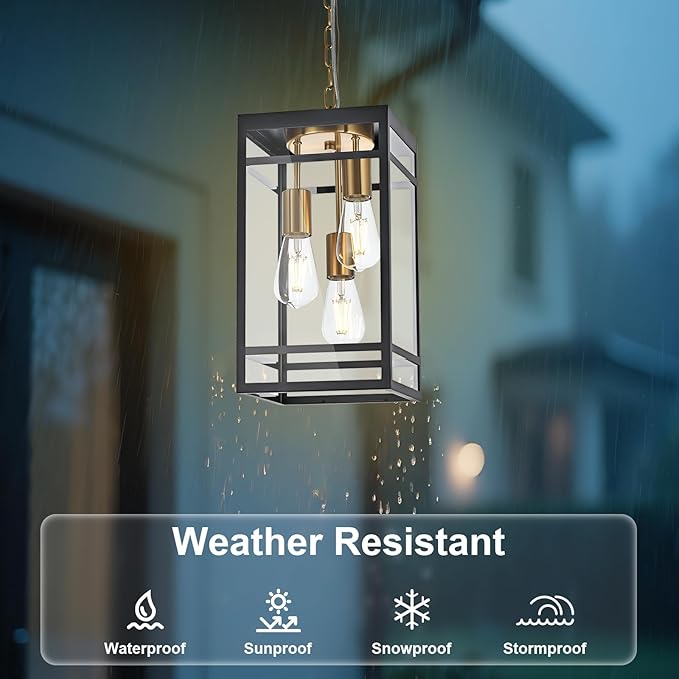 • Modern Industrial Outdoor Hanging Light: The Wanluce 3-light porch light fixture features a black frame paired with brushed brass bulb bases. Designed for both indoor and outdoor use, it delivers bright, welcoming illumination to enhance your patio, porch, or covered entryway.