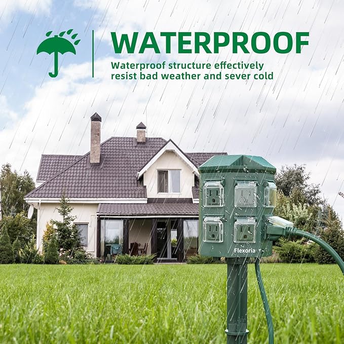• 【Waterproof Cover for Each Outlets】: Equipped with spring-loaded waterproof covers for every socket. It keeps rainwater, dust and debris out, protecting your electrical devices from safety hazards in wet or dusty environments.