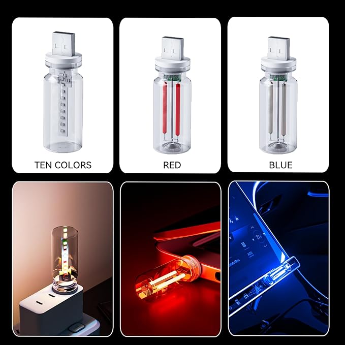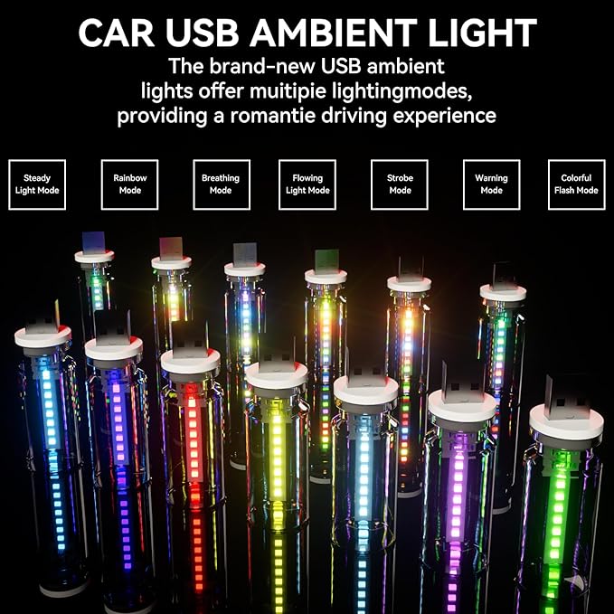 • 【Compact & Portable Design】 Mini USB car lights with a sleek and lightweight build—easy to store, carry, and use anytime. These stylish LED lights for car interior feature a modern look that doubles as eye-catching ambient night lights for colorful decoration