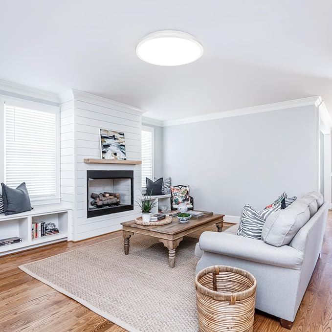 • 【Bright and Energy Efficient】12-inch Round Flush Mount Ceiling Light made with high-quality LED chips can provide 2100 lumens of bright, cool white light with a color temperature of 6500K. It's energy-saving and has a lifespan of up to 30,000 hours.