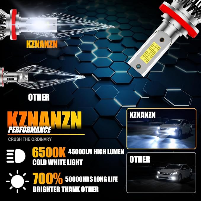 • [Energy saving, heat dissipation, durability]: Our automotive light sources save 80% of energy. Meanwhile, the bulb adopts an aviation-grade 7-series aluminum alloy integrated shell and A dual-circulation heat conduction structure, which increases the heat dissipation efficiency by 120%. The fan is driven by a magnetic levitation brushless motor, operating at an ultra-quiet speed of 12,000 RPM (noise < 18dB(A)), ensuring a lifespan extended to 50,000 hours