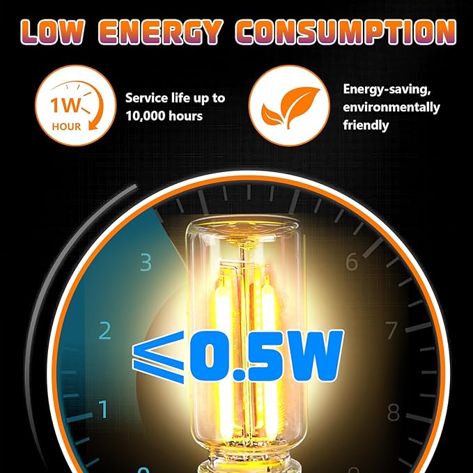 • 【Retro Design & Durable Materials】Car LED lights is crafted with medical-grade low borosilicate glass and ceramic LED double filaments. More durable, heat-resistant, with 10,000h lifespan and ultra-low 0.5W power consumption, ensuring safe and reliable use of your LED car lights interior.