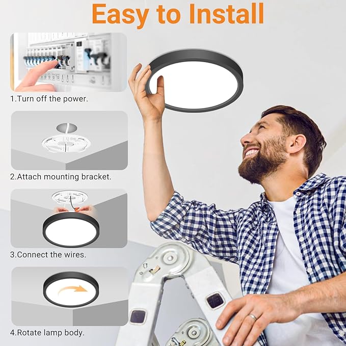 • 【Safe & Durable】Our LED ceiling lights boast a robust, non-flammable plastic casing that ensures top-notch safety, effectively warding off electrical risks like shocks and leakage. Thanks to their sealed design, they’re not only dust-resistant but also a breeze to clean—just a quick wipe does the trick. This makes them perfect for spaces like laundry rooms, which tend to get dusty, or kitchens, where moisture is common. And you can rest easy knowing they won’t fade, rust, or corrode over time