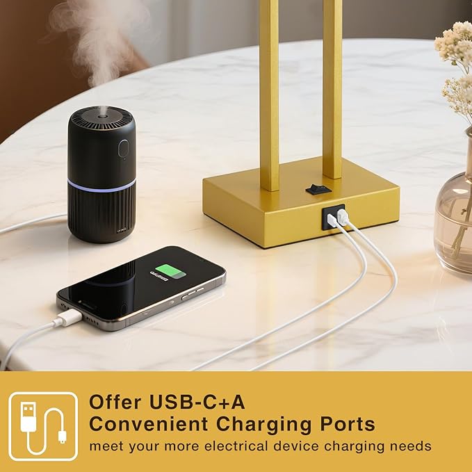 • Upgraded USB A+C charging Ports: These bedroom lamps set of 2 built-in USB A and USB C ports allows you to conveniently charge your mobile phones, kindles, headsets, diffusers, speakers, and other electronics. Whether the light is on or off, you can keep your desktop organized and tidy with this table lamps