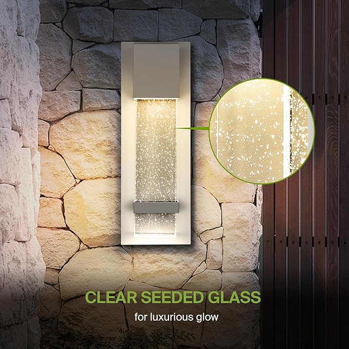 ASD LED 13 Inch Bubble Glass Wall Light Fixture, Exterior Flush Mount Sconce | 3CCT, Waterproof, Dimmable, ETL Listed | 12W 500LM 3000-5000K 120V | Outdoor-Indoor Lighting | White