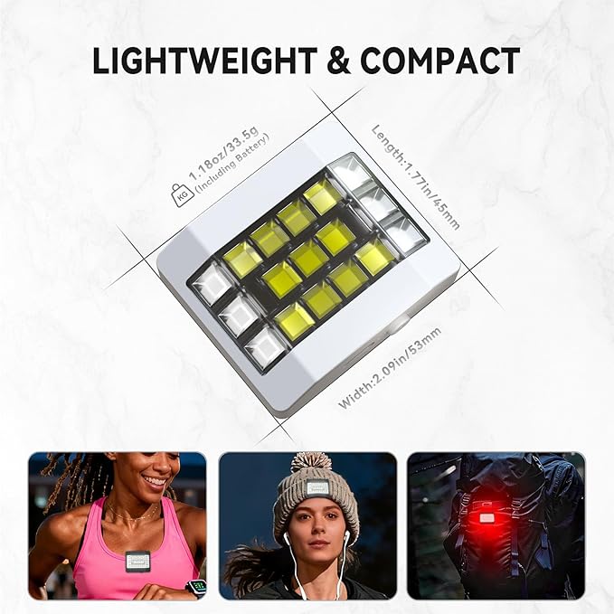 • Lightweight and Durable:This running light weighs just 1.2 ounces, and we've widened and thickened the clip to effectively prevent it from falling off during use.