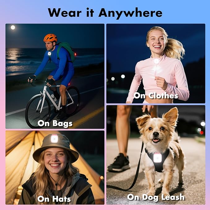 • Hands-Free Flashlight: This running light securely clips onto collars, hats, backpacks, pet collars or pockets in just one second - no struggling needed! The sturdy clip design keeps your hands completely free for running, walking or any outdoor adventure.Allows you to focus more on the exercise itself during your night run or walk