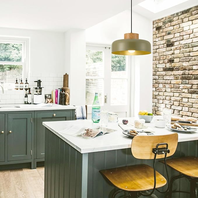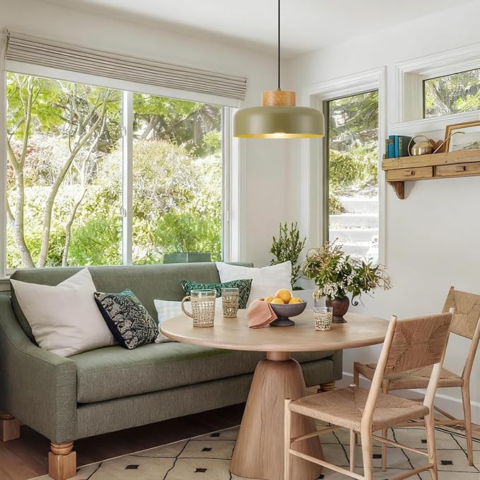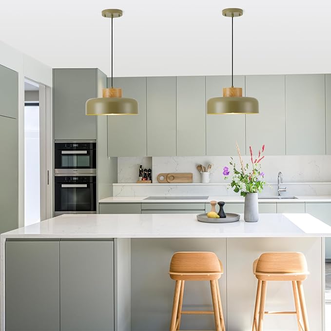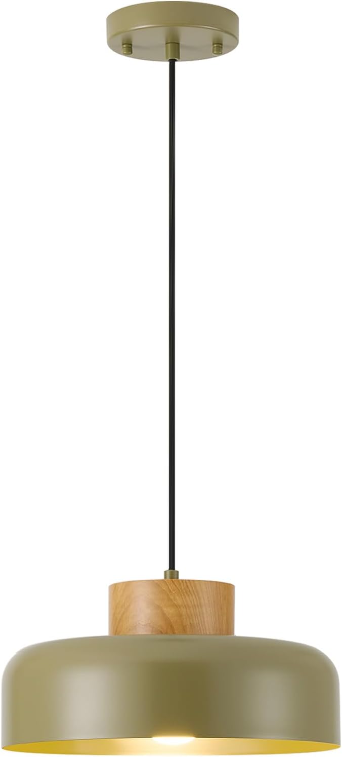 Modern Pendant Lights,12.6 inch,Naturl Wood,Adjustable Simple Pendant Lighting for Kitchen, Dining Room, Olive Green