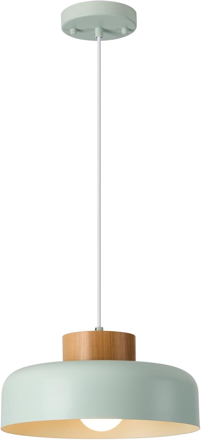 Mid Century Pendant Lights,12.6 inch,Natural Wood Cap,Modern Pendant Light Fixture for Kitchen, Dining Table, Light Blue
