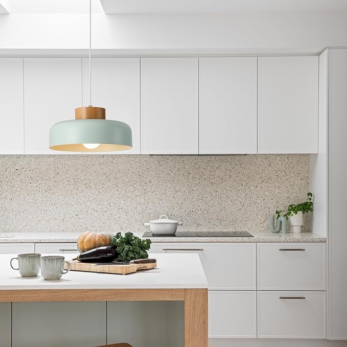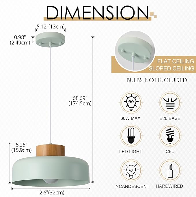 • Modern Design :Soft blue metal shade with a smooth rounded silhouette adds a fresh, contemporary touch to kitchens, dining nooks, and entryways.