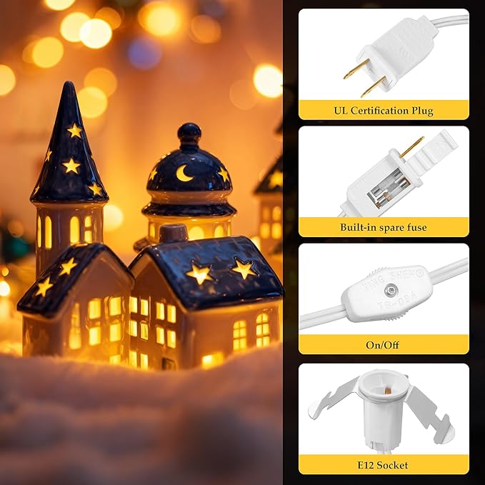 • Blow Mold Light Cord with Clip Bulb: C7 accessory cord bathes your craft in radiant light, creating a warm sweet environment for you. UL certified, the light cord is both safe and durable