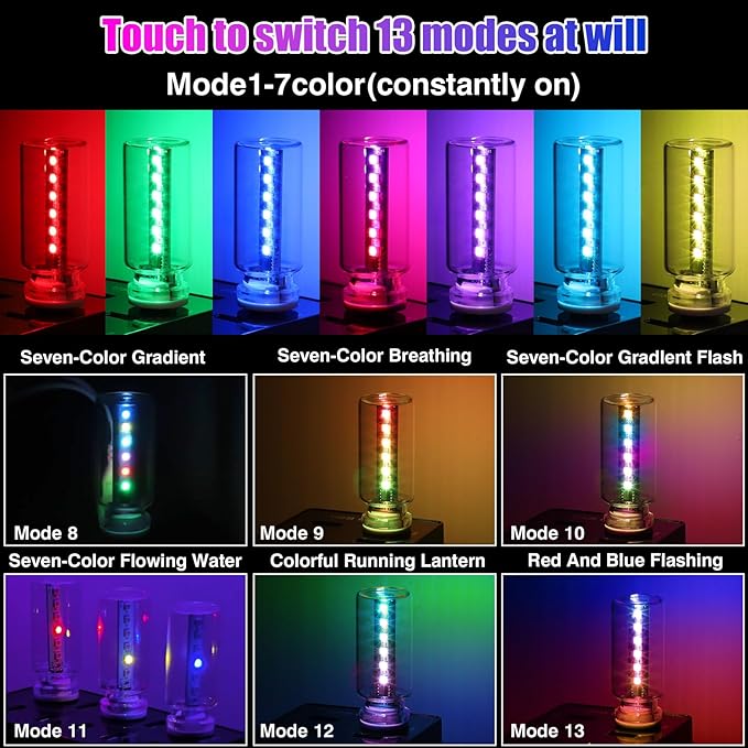 2PCS 13 in 1 USB Car Light, Plug in USB Interior Car Lights, Touch Control Mini Glass Bottle Night Lamp with 13 Modes & 7 Colors, Mini LED Bulb Night Light Ambient Lighting for Auto Bedroom Decoration