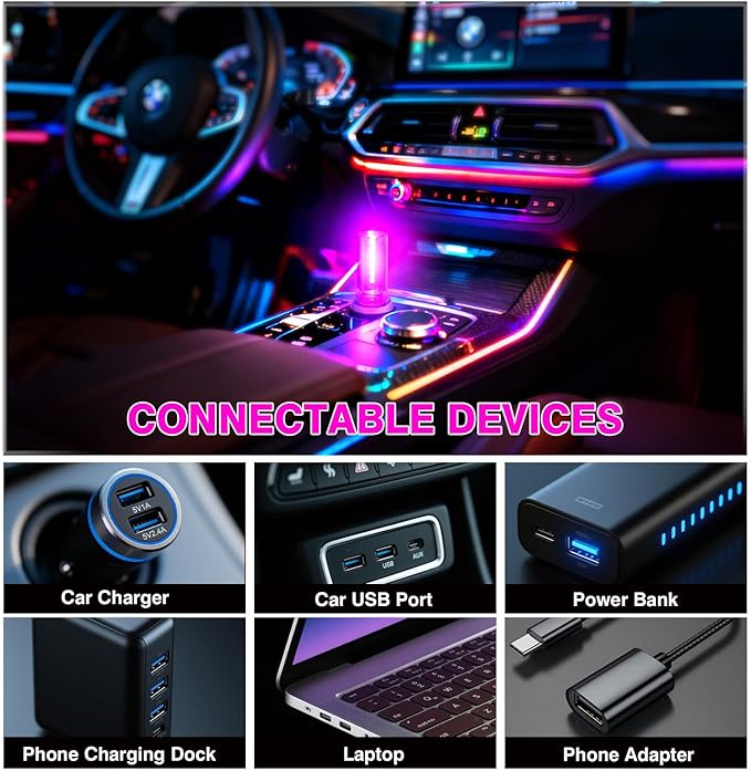 • 【Transform Your Space in Seconds】Go beyond basic lighting and craft the perfect atmosphere wherever you are. Ideal for creating a relaxed vibe in your bedroom, adding stylish accents to your car interior, or setting the mood for parties and cozy nights. These versatile lights help you curate the ideal ambiance in an instant.