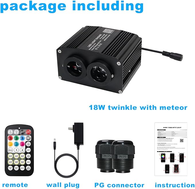 • 【Package】:18W twinkle light box+ wall-plug adapter cord+ remote+ 2X PG connector, Two year warranty guarantee to satisfy your need, perfect for car use home décor sky star ceiling light effect.