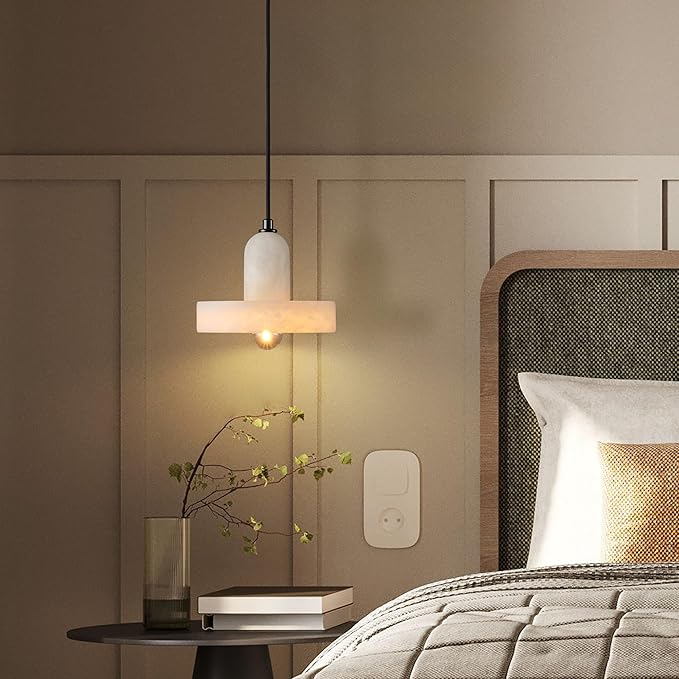 • Genuine Natural Alabaster Shade – Handcrafted from natural alabaster stone, each shade showcases unique marbling and subtle translucency. When illuminated, it emits a soft, diffused glow that enhances warmth and texture in any modern or minimalist interior setting.