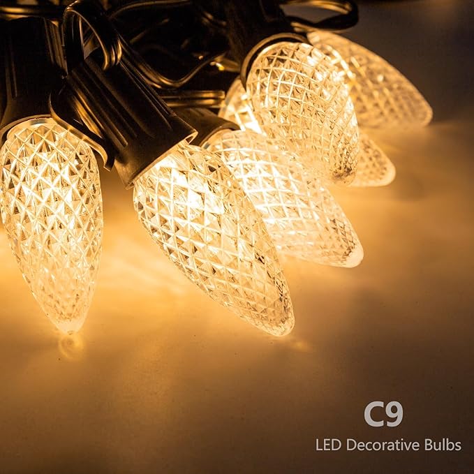 • Vintage Style LED Bulbs: C9 Edison bulbs provide a warm light glow and create the retro look of antique filament incandescent bulbs with the benefits of LEDs cool to touch. The surface of diamonds emits a brilliant light, adding a strong festive atmosphere.