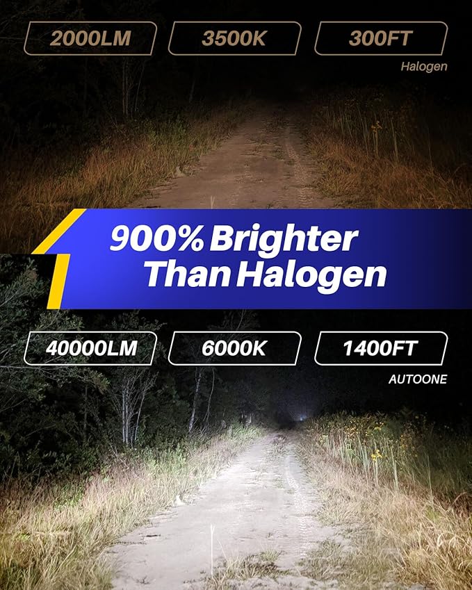 • Improved Brightness : AUTOONE 9007 led light adopts the high quality chips. Each set provides 40,000 lumens light output in 6000K white. Make road signs and obstacles clearly visible. Help you can react in time