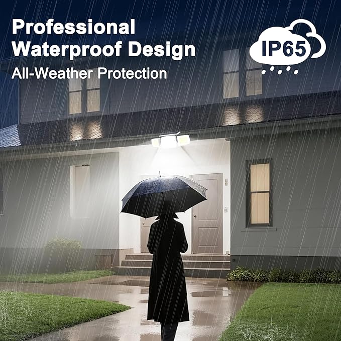 • ✨【IP65 Waterproof & Wireless Design Easy Installation】This solar motion lights outdoor waterproof are made of durable material, IP65 waterproof ensures the outdoor light fixture can function well even in heavy rain, snowstorms.It wireless design are easy to install, no needed with annoying wires or adapters, and no need to buy batteries. Only need to use the included screws to fix on the exterior wall